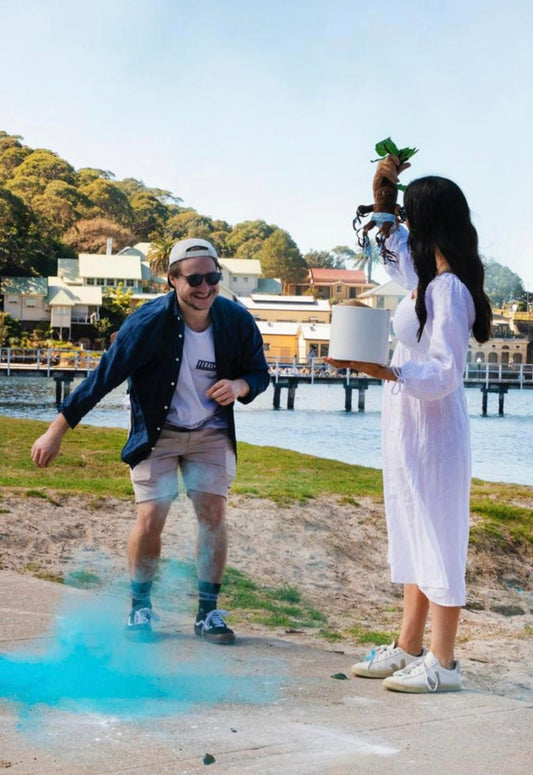 Gender Reveal Blue or Pink Rugby Ball Footy NRL Football NFL AFL League Explosive holi powder smoke