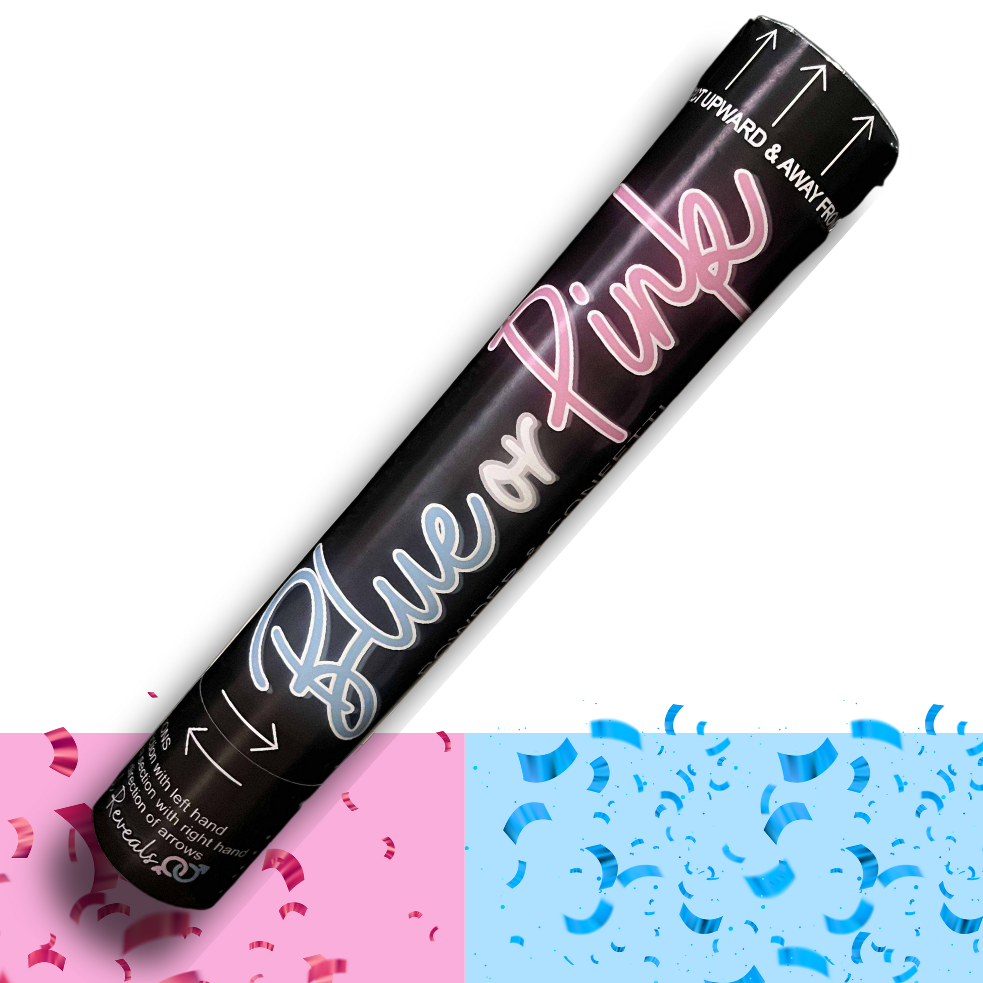 Gender Reveal Cannon Party Popper – Coloured Explosive Smoke Powder & Confetti – Pink or Blue – Exciting Baby Gender Reveal